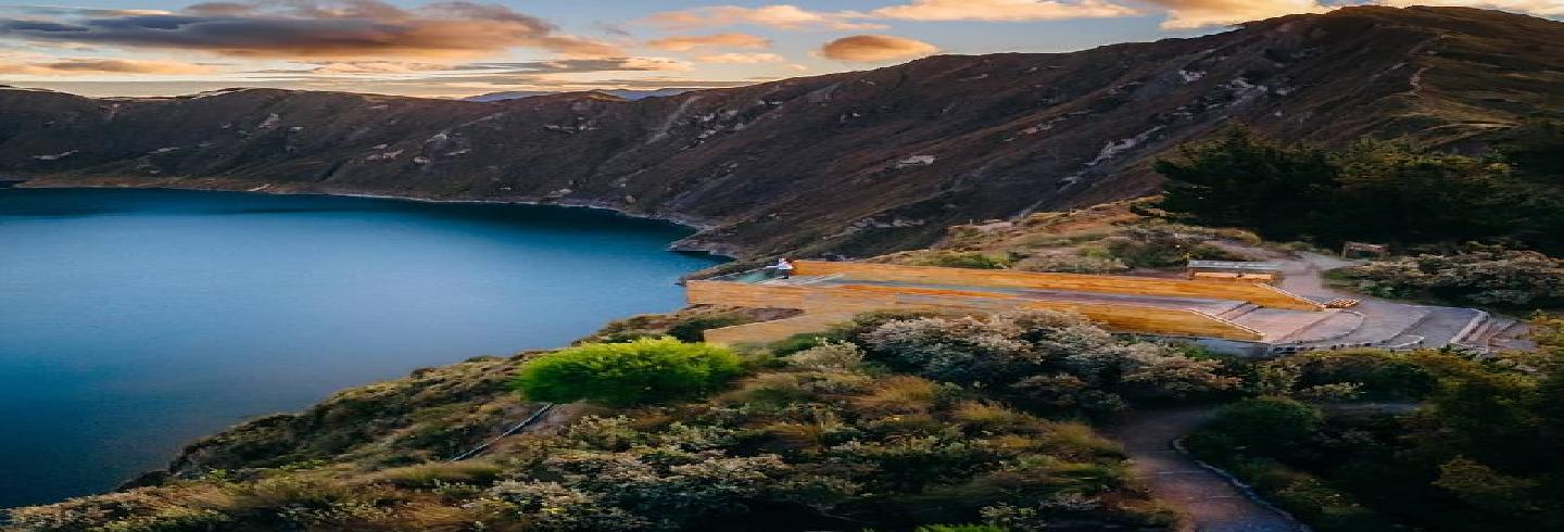 Mirador ecológico que permite observar mucho más allá del borde del cráter, y, debajo de ella, hay un graderío que crea la oportunidad de sentarse y contemplar el paisaje